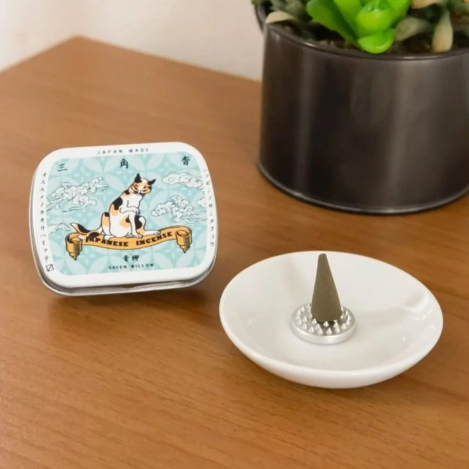 Handcrafted in Kyoto, this cone incense comes in two soothing scents: Magnolia and Sandalwood. Each fragrance brings its own calming atmosphere, perfect for relaxing moments. The packaging features a playful ukiyo-e style cat illustration, with a mini incense holder included for convenience.