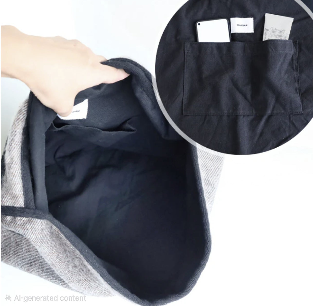 選用柔軟且耐用的優質布料,搭配自然垂墜的肩背設計,貼合身形、輕鬆好背;袋口以對比色鑲邊細緻收邊,為整體造型增添層次感與設計感。內部附有兩個實用口袋,方便分類收納隨身小物。