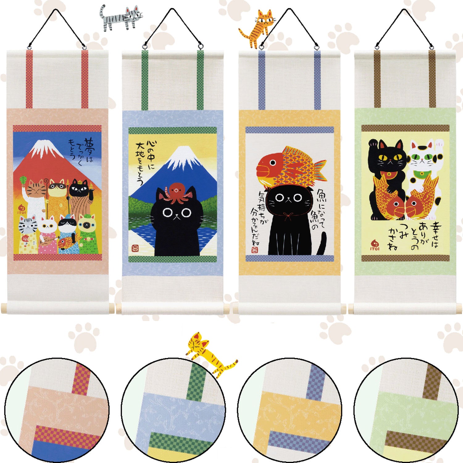 糸井忠晴貓掛軸 - 青富士